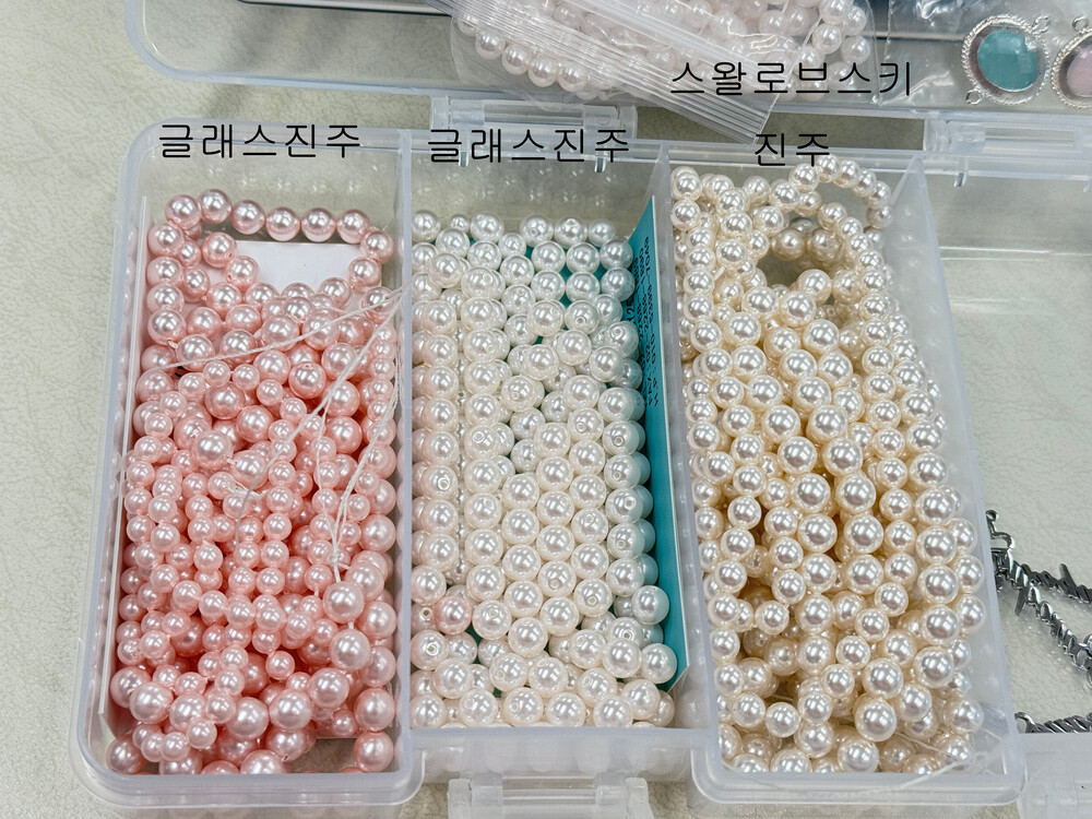 글래스 진주, 스왈로브스키 진주, 담수 진주 3가지 중에서 선택하실 수 있으며