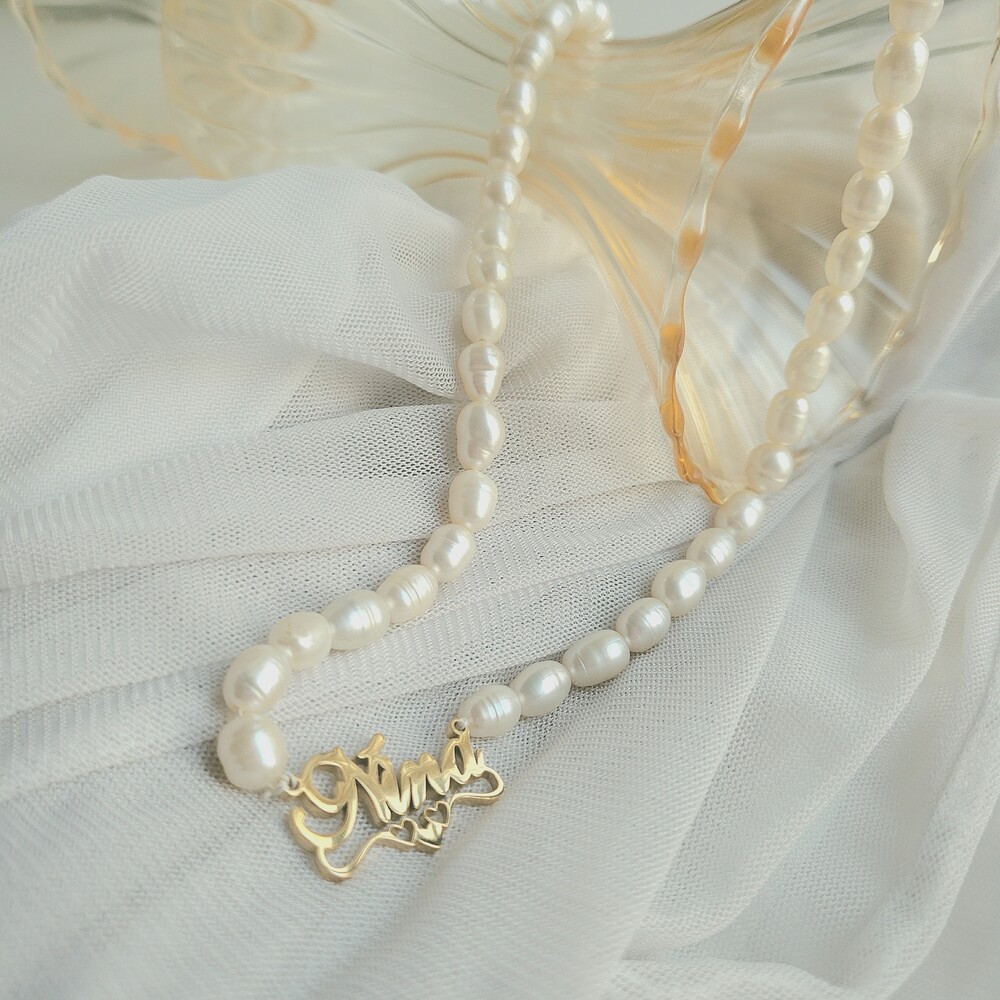 오더메이드 로고/이니셜 진주 목걸이 [예약 상품]