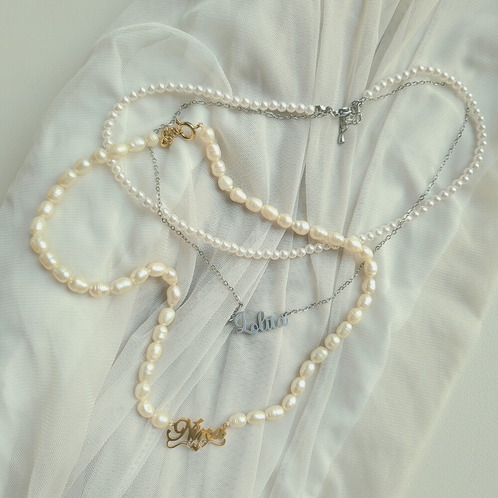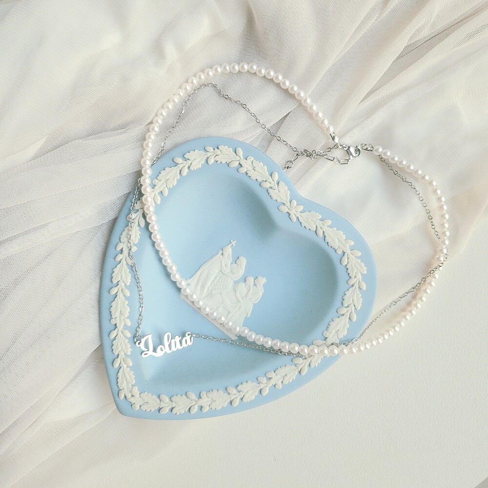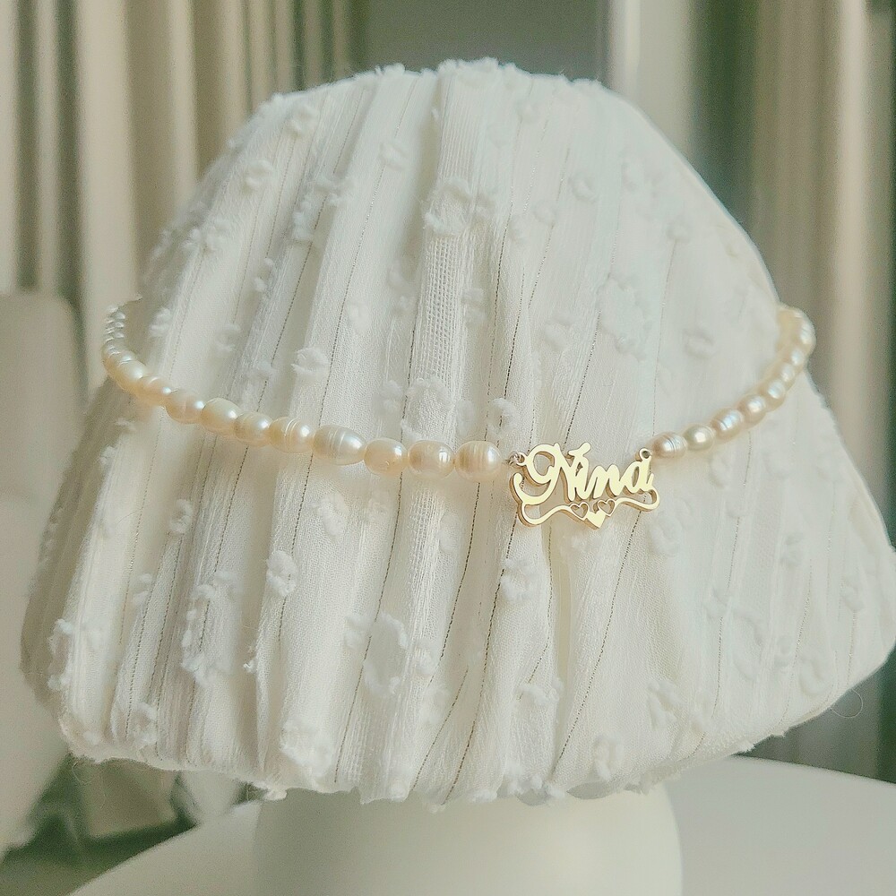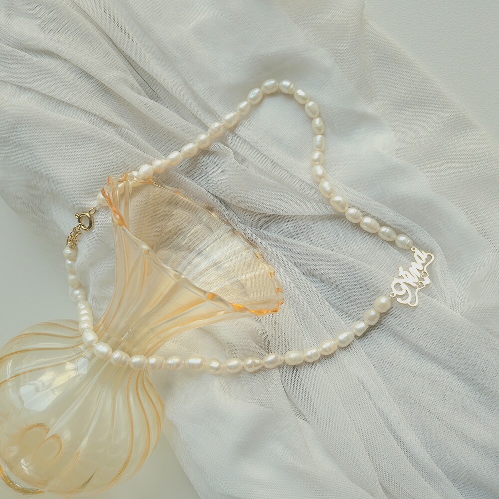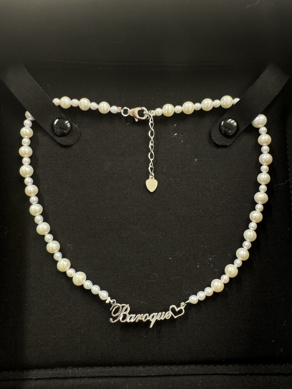 원하는 오리지널 문구를를 커스텀할 수 있는 진주 목걸이입니다.