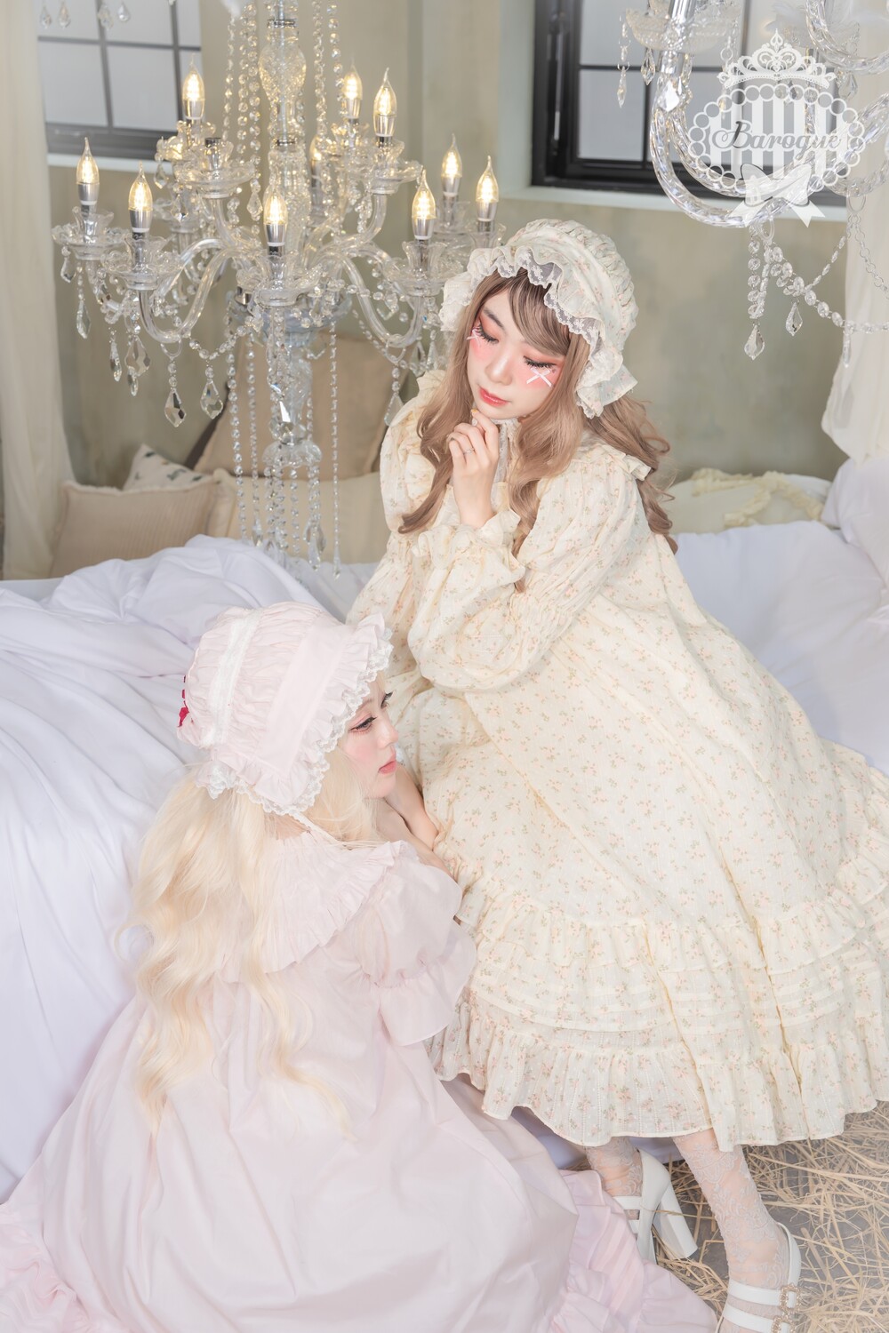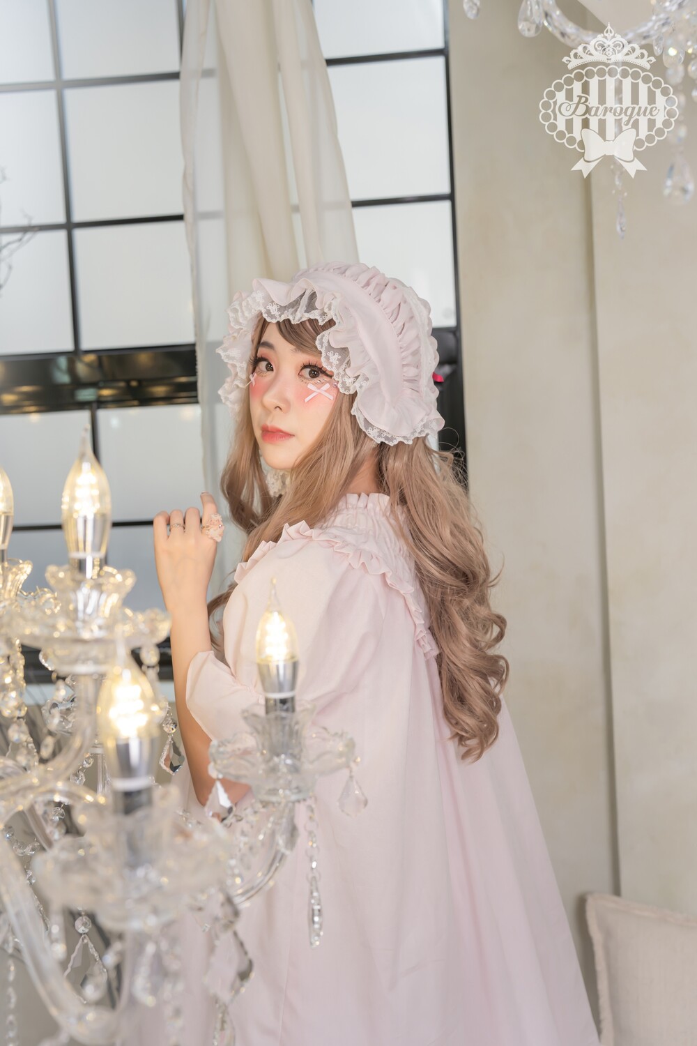 초판버전에 비해 뒤통수 깊이가얕아지고, 프릴 길이가 짧아져 더욱 귀엽고 캐주얼한 느낌의 보닛이 되었습니다