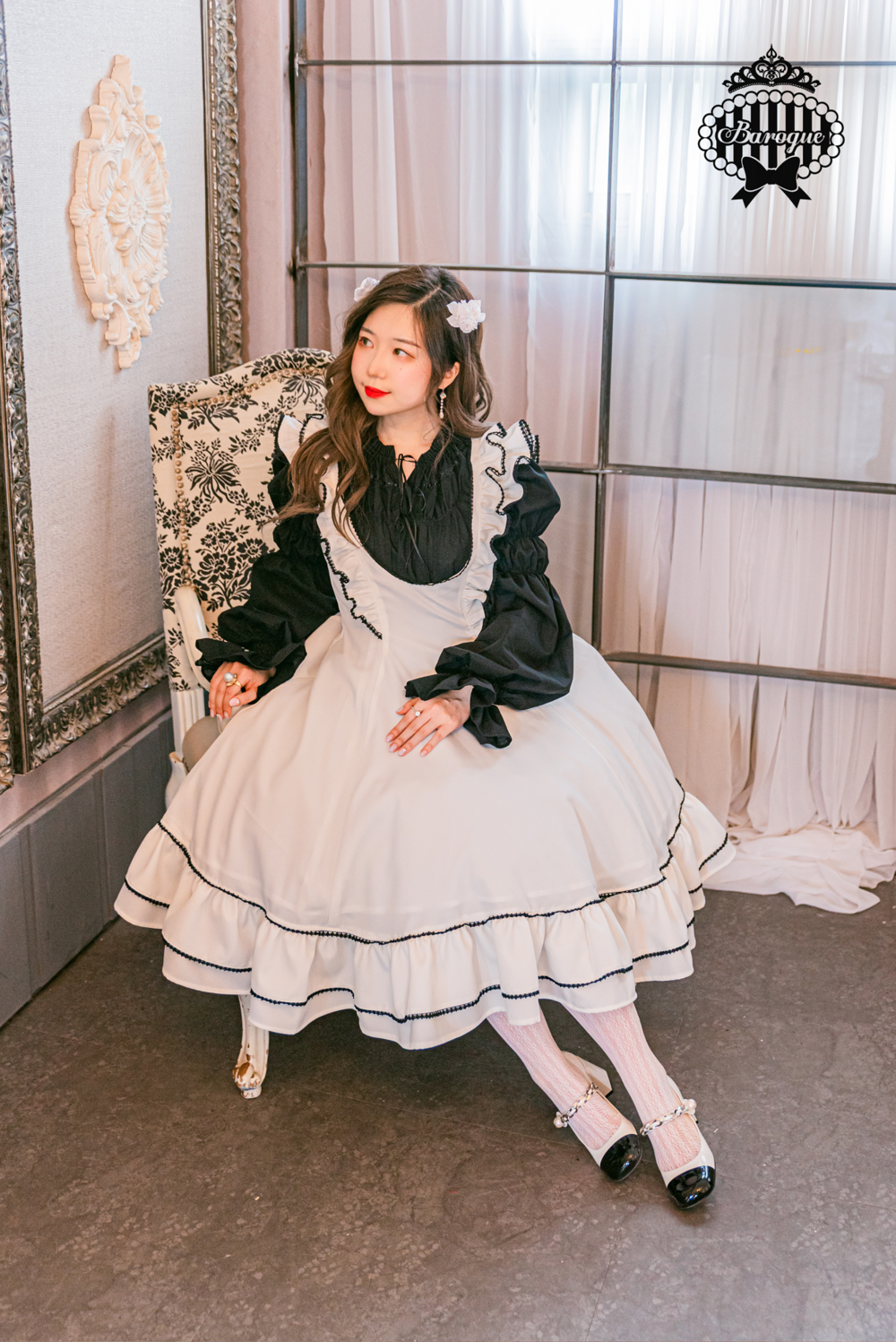 프린세스 라인까지 이어지는 풍성한 프릴의 디테일이 사용되었습니다.
