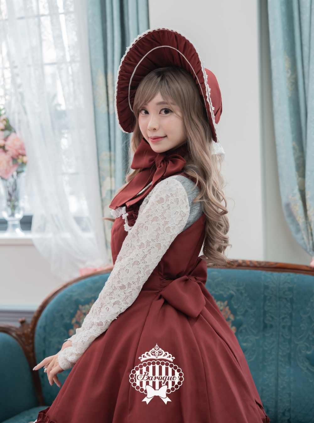 랏셀과 3단의 레이스를 한가득 주름 잡아 밑단을 둘러,