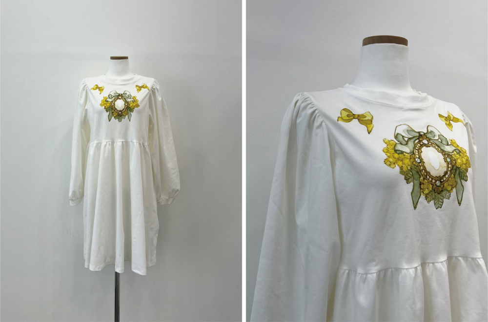 넉넉한 품과 넓은 스커트 폭으로 가벼운 파니에의 착용이 가능한 상품이며,