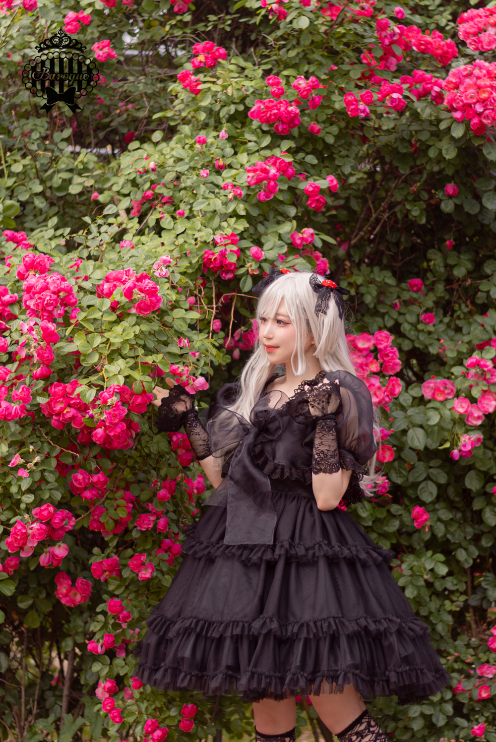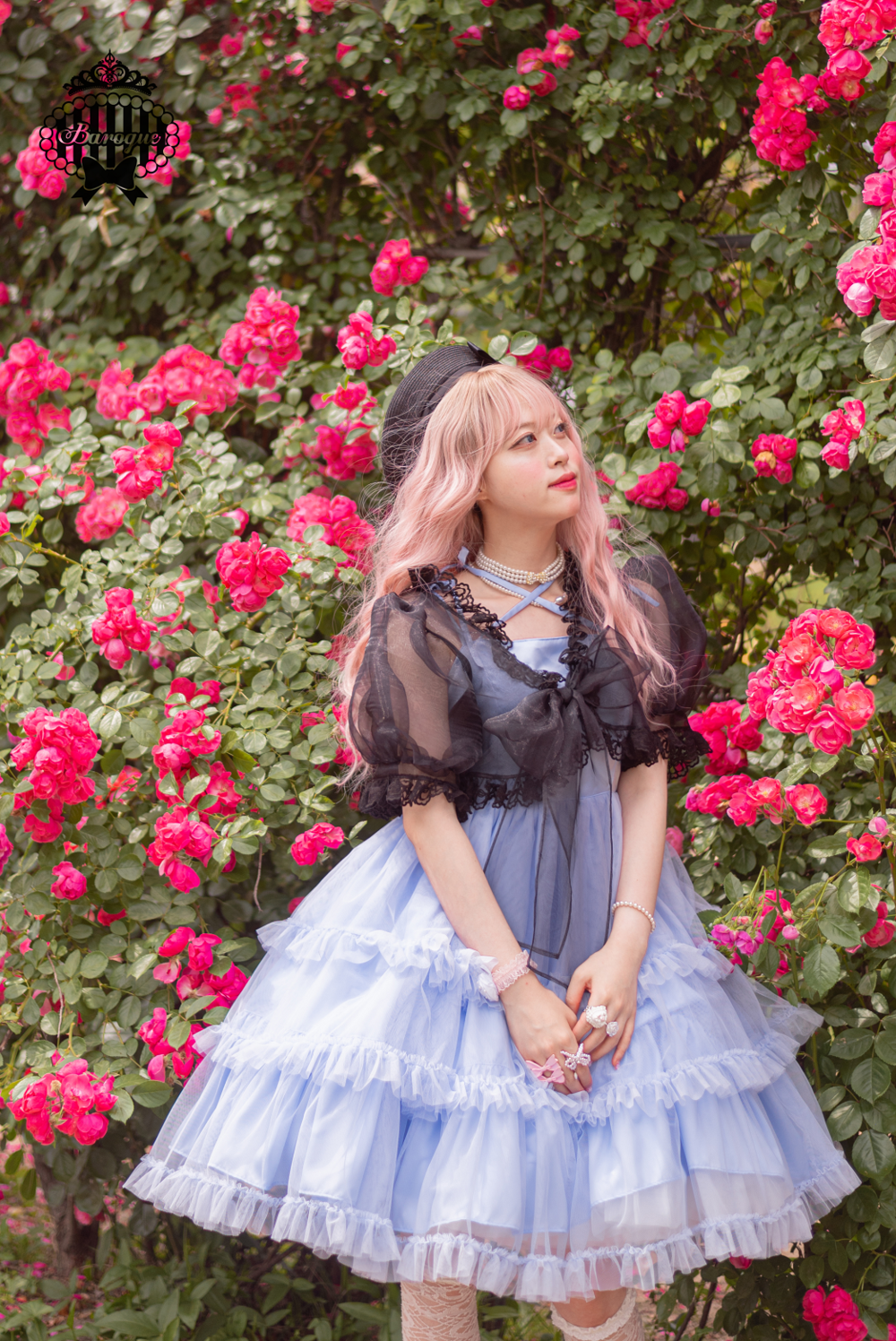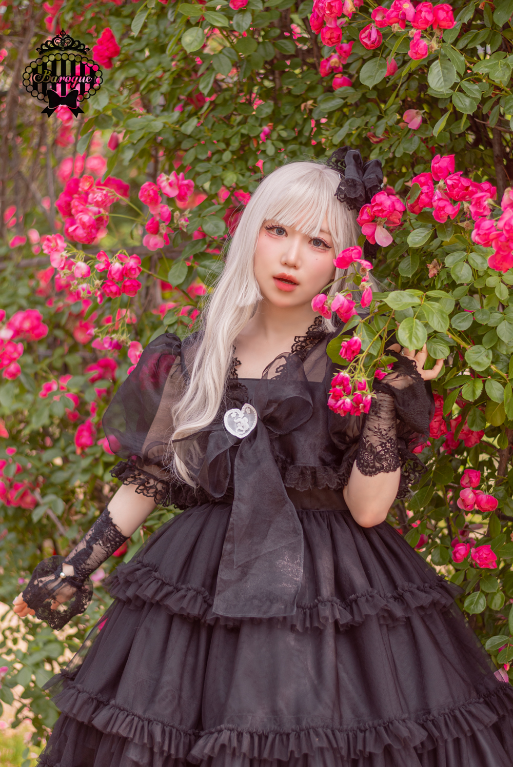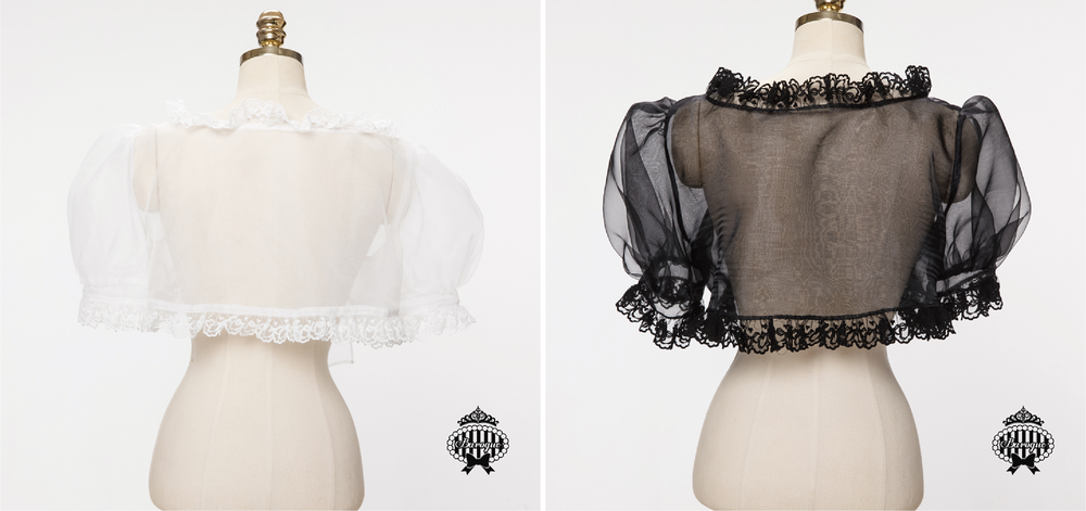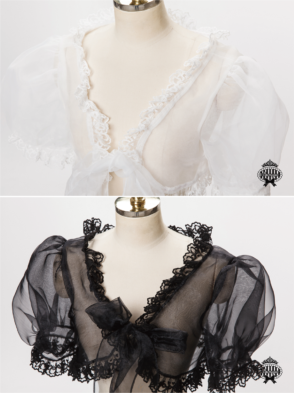 볼레로 라인과 소매 끝에는 리본이 수놓여진 레이스가